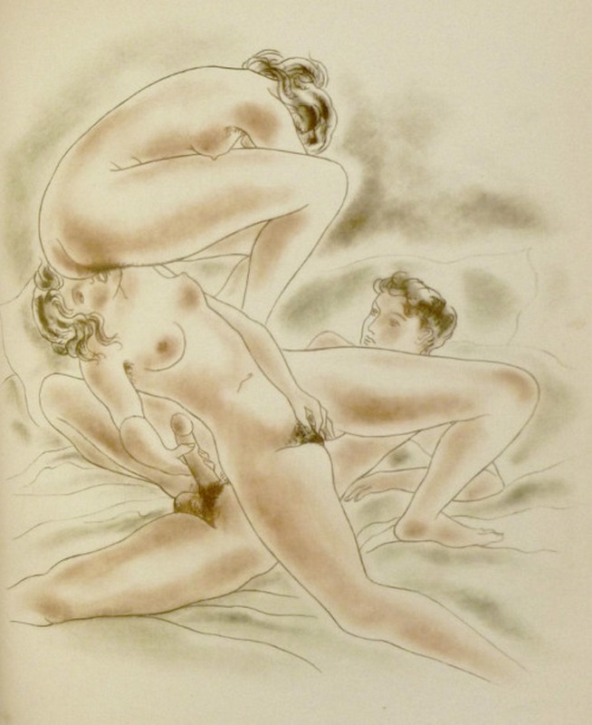 "Fatigué de tenir l'équilibre, je me laisse tomber de Christie et me couche sur le dos, mettant la tête de Sabrina devant ma queue énorme et raide, que je lui introduis dans la bouche, me branlant tandis qu'elle me suce le gland. J'attire Christie vers moi, et tout en lui ôtant ses gants, l'embrasse à pleine bouche, la léchant, écrasant ma langue contre la sienne, aussi profondément qu'elle puisse aller dans sa gorge. Elle se doigte le con, si mouillée que l'on dirait que tout le haut de ses cuisses est enduit d'une substance huileuse, luisante. Je repousse la tête de Christie pour qu'elle aide Sabrina à me sucer, et toutes les deux me sucent tour à tour le gland et la queue, puis Christie descend à mes couilles gonflées, douleureuses, grosses comme deux petites prunes, et se met à les lécher, avant de les avaler entièrement et de les masser, de les sucer alternativement, une à une, les séparant avec sa langue. Puis Christie remonte vers ma queue que Sabrina suce toujours, et elles commencent à s'embrasser à fond, juste au-dessus du gland, l'inondant de salive, sans cesser de me branler. Pendant ce temps, Christie continue de se masturber, trois doigts dans le vagin, le clito trempé de mouille, gémissant. Excité, je l'attrape par la taille et la fais pivoter, mettant son sexe à hauteur de mon visage, sur lequel elle s'assoit avec reconnaissance. Propre, rose, mouillé, dilaté, le clito gonflé de sang, son con est à présent au-dessus de moi, et j'y plonge mon visage, ma langue, me régalant de son goût, tout en lui doigtant l'anus. Sabrina s'occupe toujours de ma queue, branlant la base, le reste entièrement dans sa bouche, puis elle passe sur moi, et je lui arrache sa culotte, de manière à ce que son cul et son sexe soient face à Christie, à qui je fais baisser la tête. " Lèche, suce-lui le clito", ce qu'elle fait.